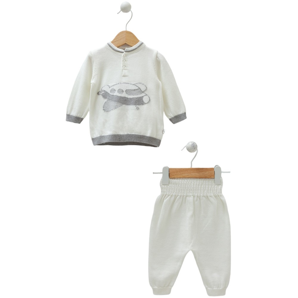 Boys' set, 100% cotton, white, winter, two pieces