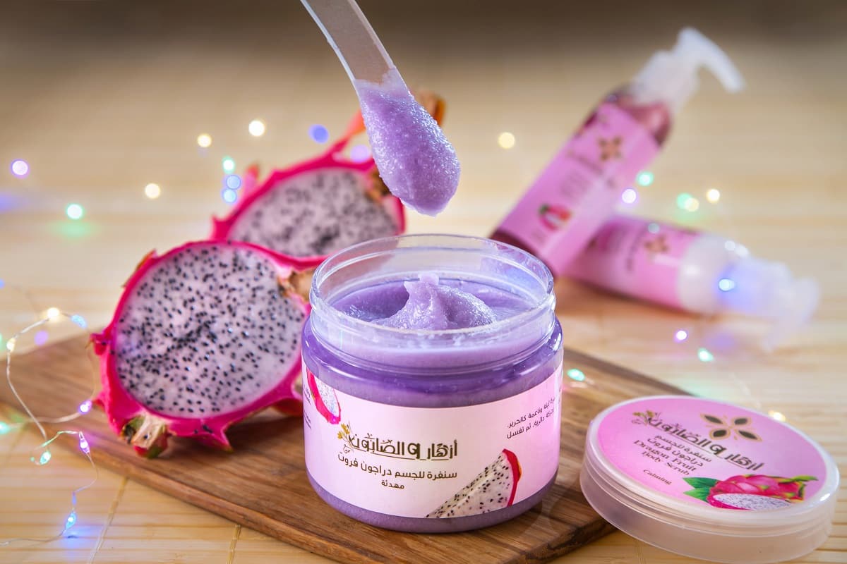 Dragon Fruit Body Scrub 500g This scrub exfoliates the skin, removing its dead cells, leaving it silky smooth & supple. Ingredients: Saccharum Officinarum. Petrolatum. Cocos Nucifera Oil. Isopropyl. Partum. Cera Microcris