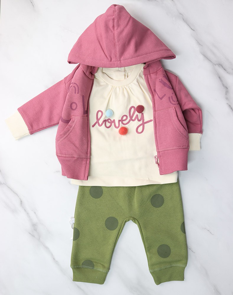 Girls' hoodie set, 3 pieces, pink, 100% cotton, winter