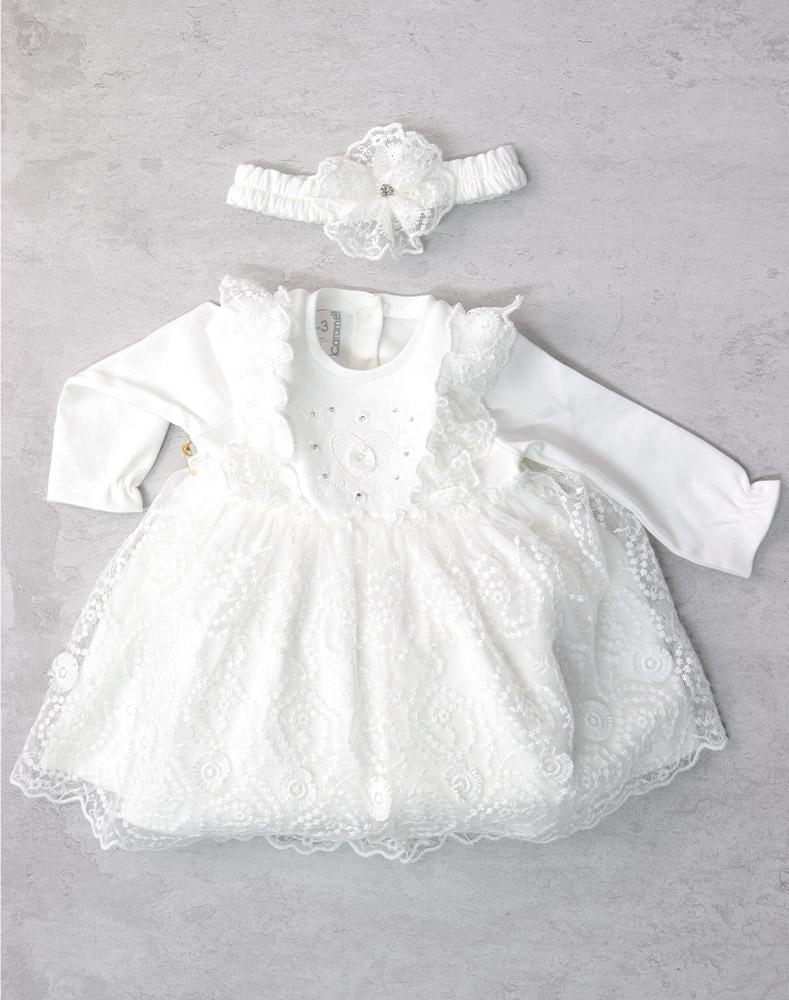 White Kids Girls Heart Print Dress