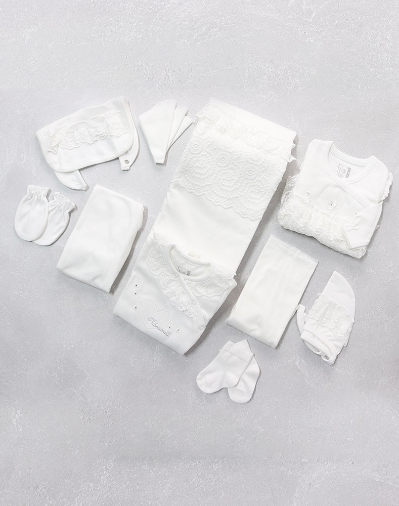 طقم حديثي الولادة 10 قطع لون اوف وايت