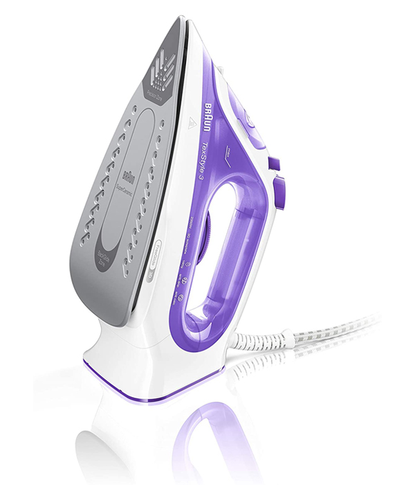تكستايل 3 مكواة بخار من براون تمت ترقية هذه المكواة بمظهر جديد وقوة أكبر وأداء بخار أفضل. يضم الآن تقنية 3 دي فري جلايد الأولى في العالم لإمكانية الانزلاق 360 درجة. تتميز مكواة البخار براون تيكستايل 3 بقاعدة من السيراميك الإنزلاقي ثلاثي الأبعاد، مما يجعلها سهلة الانزلاق عبر ملابسك ، حتى عند تحريك المكواة إلى الخلف. امكانية إزالة التجاعيد في المناطق التي يصعب الوصول إليها مثل الياقات والدرزات ، بحيث يمكنك إنهاء عملية الكي بسرعة وسهولة.
