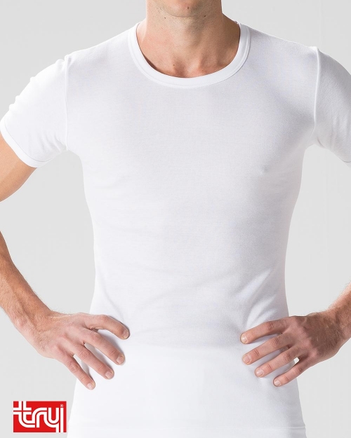 من مجموعة تراي TRY الراقية ذات الخامات العالية، فانلة نصف كم رجالي قبة دائرية مصنوعة من أجود أنواع القطن وتصميم يناسب جميع الأذواق، تحتوي على خامات خفيفة وناعمة على البشرة حتى توفر أقصى حد من الراحلة والنعومة.
