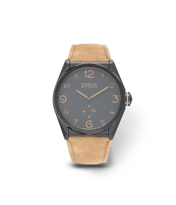 ساعة رجالية من ماركة زايروس بتصميم عصري. مصنوعة من المعدن المقاوم للصدأ ومقاومة للماء حتى عمق ٣ أمتار. قطعة مثالية لارتدائها بشكل يومي. هدية مثالية لمن يحب البساطة. السير مصنوع من الجلد باللون البني الفاتح. والإطار وعقارب الساعة باللون الذهبي .