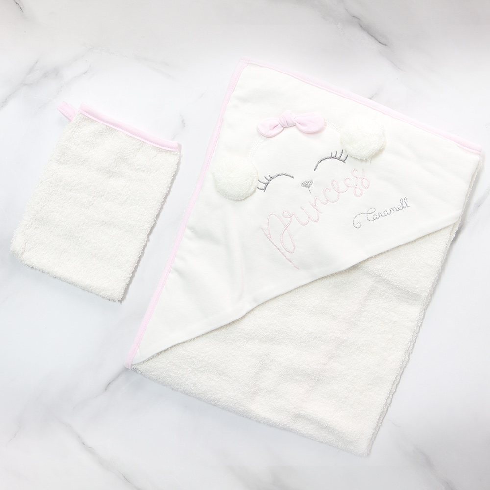 بطانية لحديثي ولادة بقبعة وطبعات الوان