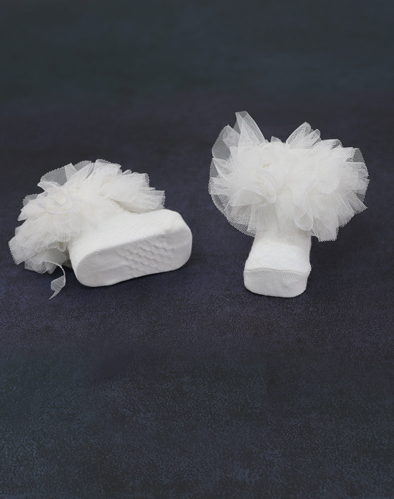 الفئة العمرية:- من ( 0 حتي 3 أشهر ) الموسم : شتوي خريفي اللون : ابيض جوارب أطفال الخامة : قطن ١٠٠٪ بلد المنشآ : تركيا