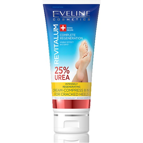 Expert Regenerating Cream-Compress 8 in 1 against cracked heel with 25% UREA effectively regenerates cracked, rough heel and foot skin, restoring its silky smoothness and softness.