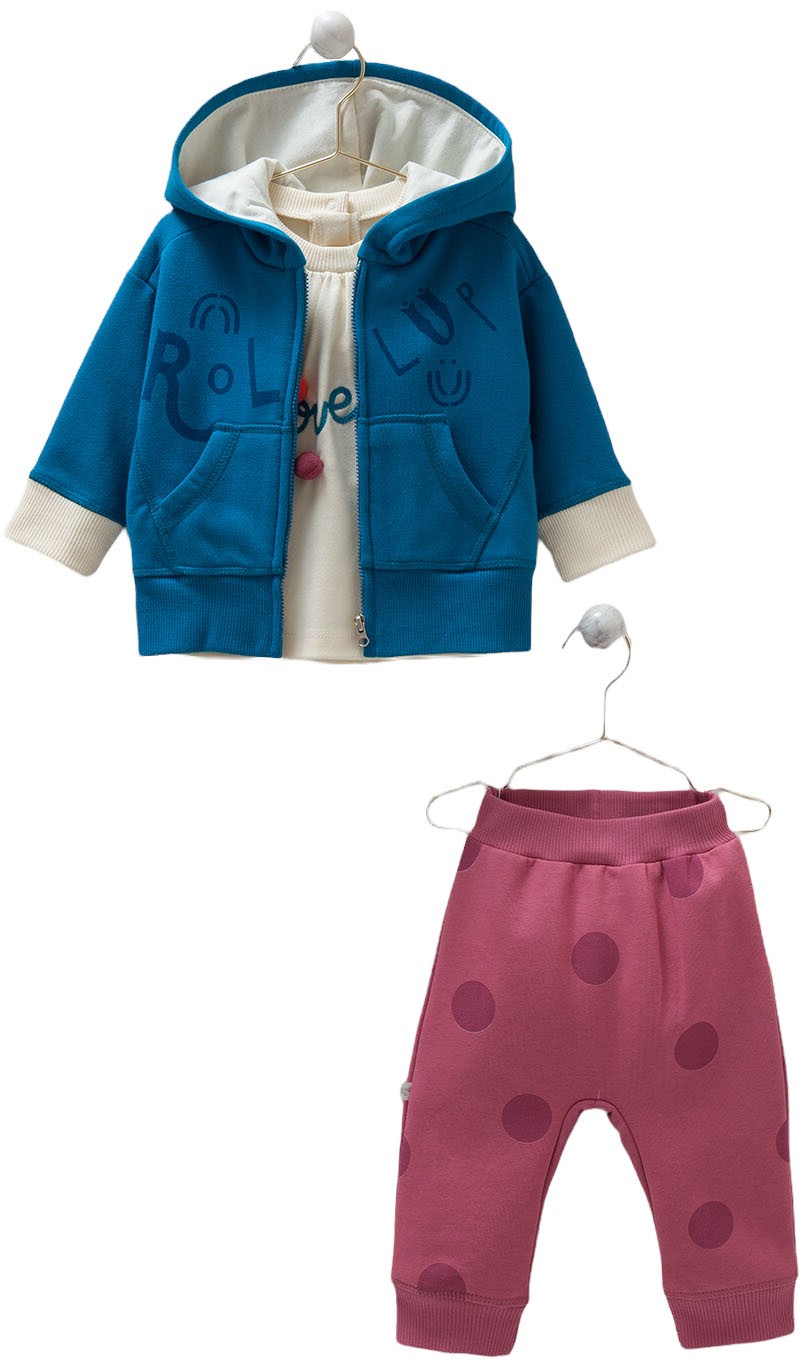 طقم بناتي هودي 3 قطع أزرق 100 % قطن شتوى