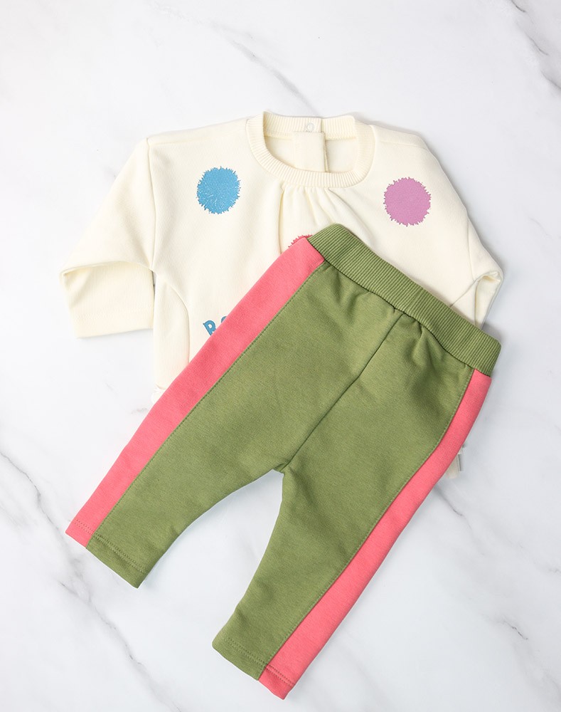 Girls' set of two pieces, beige, 100% cotton, in winter, with color prints