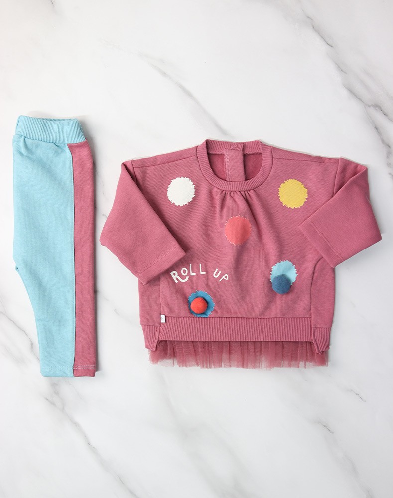 Girls' set of two pieces, baby blue ,pink, with color prints