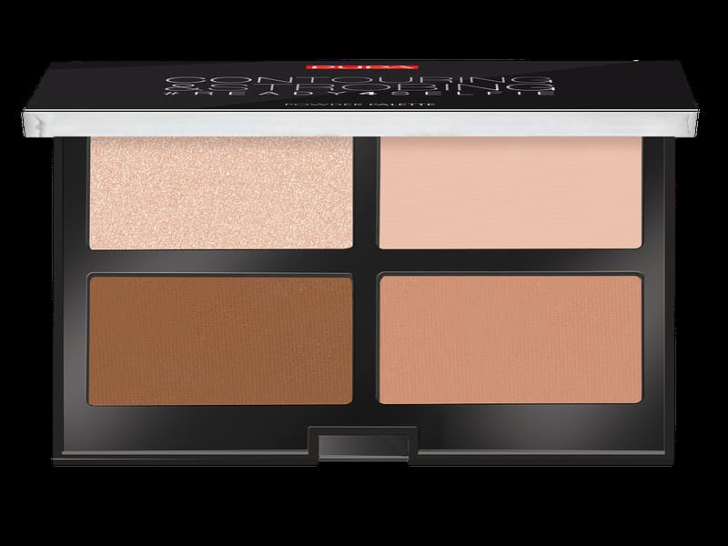 A pressed powder palette used to illuminate, sculpt the face and make its features more visible