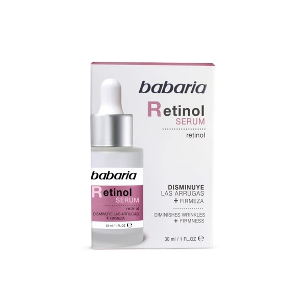 DECREASES WRINKLES+ FIRMNESS The aging of the skin is gradual and has multiple visible signs such as the appearance of expression lines and wrinkles, loss of elasticity and firmness, loss of luminosity and appearance of age spots. At Babaria we have used a Retinol of natural origin based on fruits and vegetables. Thanks to the use of Retinol Babaria Serum we are able to fight against aging, obtaining firmer and more elastic skin, reducing wrinkles on the entire face: forehead, crow's feet, eyes and chin, as well as equalizing skin tone, at the same time that the effects of pigmentation are improved, since it regulates the expression of tyrosinase and inhibits melanin synthesis. Serum with a light touch and quick absorption.